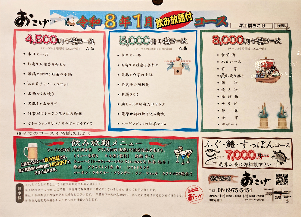 全てのコースにドリンク飲み放題が付きます。
